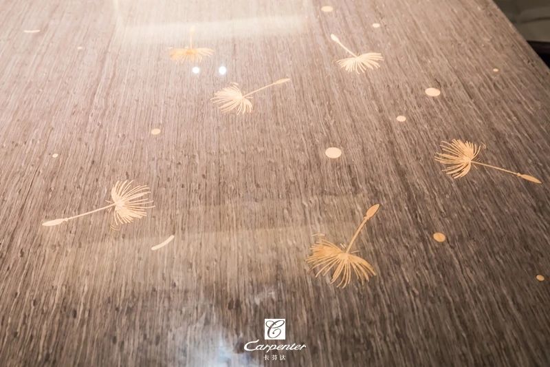 飾以蒲公英木皮拼花,靈動自然